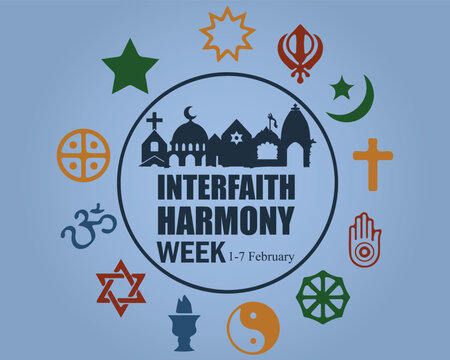 Interfaith Harmony week, February 1-7. Social Media Post, poster, card, banner, background Vector Design Template.