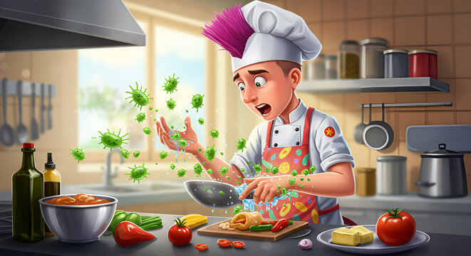 Bathroom door handle with germs, germs, bathroom, highlighting common touch points