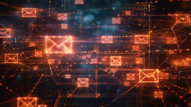Network of binary with secure email icons, a digital fortress for online correspondence