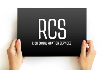 RCS - Rich Communication Services, it is a communication protocol aimed at enhancing traditional SMS with more advanced messaging features, acronym text concept on card