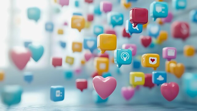 colorful speech bubbles create vibrant visual representation of trending topics hashtags digital graphic shows engaging online communication ideas for social media abstract design suggests social
