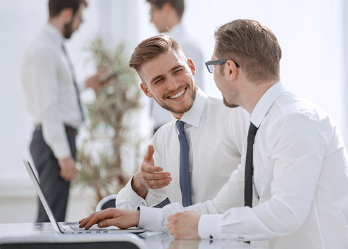 two employees talking in the workplace