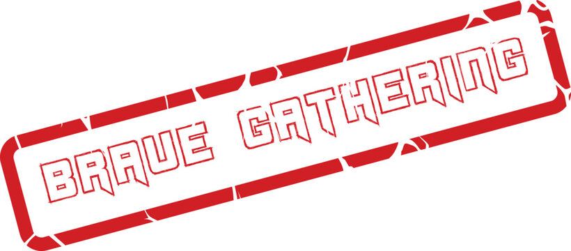 Bold red rubber stamp impression with Brave Gathering text conveying courage for community events and initiatives