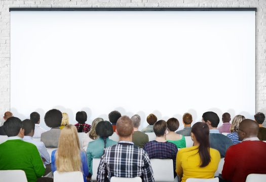 Teacher of English language and ethnically diverse migrant students sitting around table making educational poster together