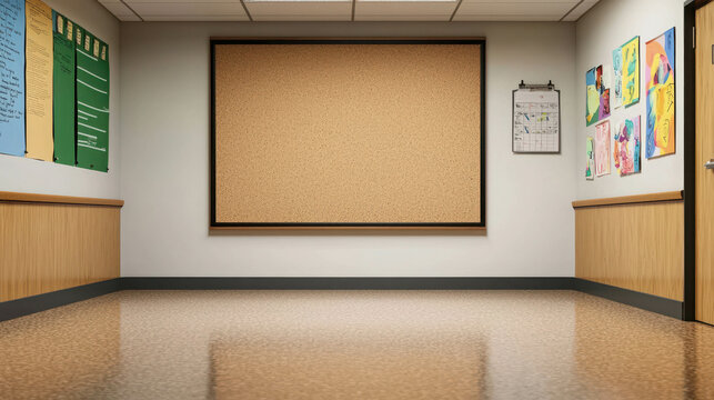 An empty message board at a community center, ready for public notices.