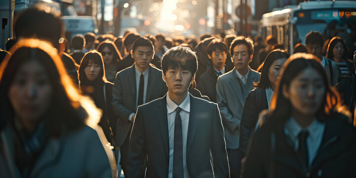 駅などで通勤や出勤する人々のイメージ 顔無し