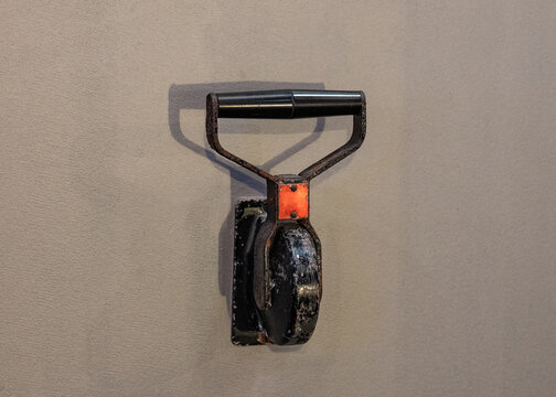 Damaged scorched commutator due to short circuit in rotor winding of DC electric motor. Detail of charred electromotor part with copper wire and metal laminations on blurred black netting background.