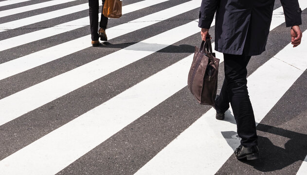 Walk to work day celebration with diverse business people commuting