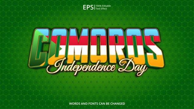 comoros editable text effect with comoros flag pattern suitable for poster design about holiday, Feast day or comoros independence day moment