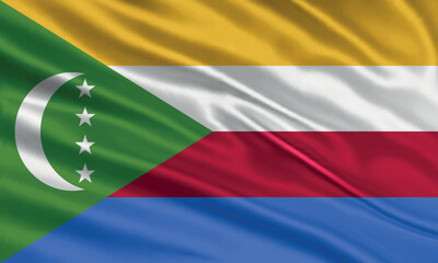Comoros flag design. Waving Comoros flag made of satin or silk fabric. Vector Illustration.