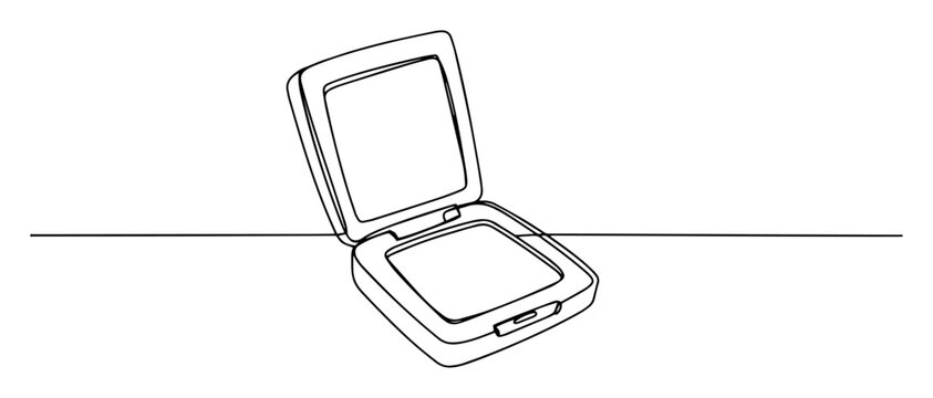 continuous one line drawing of an open face powder compact a cosmetic makeup product for beauty vector monoline lineart design