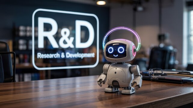AI-driven companion in metaverse - artificial dog against mysterious cubic structure with ornaments under a sunny sky