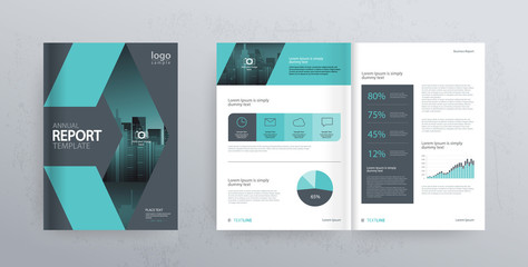 Corporate business presentation guide brochure template, Annual report, 16 page minimalist flat geometric business brochure design template, A4 size.