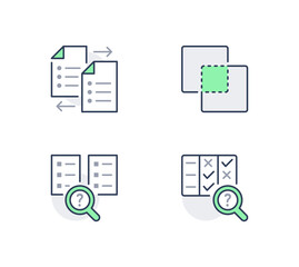 Comparison line icons. Vector illustration included icon as compare files, options, outline pictogram of price analysis. Green color, Editable Stroke