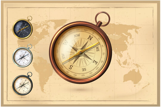 Old compass on vintage map. Retro stale. Making a decision, choosing a direction