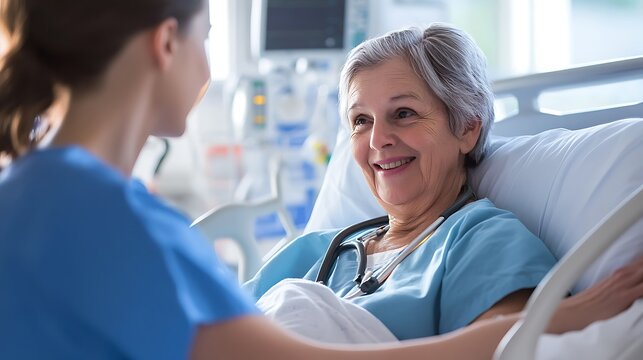 Compassionate Care: A Nurse and Patient Share a Moment of Connection in a Hospital Room