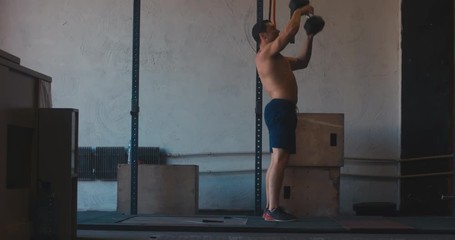 Full portrait of Caucasian male athlete doing high intensity workout in a functional gym. 4K UHD