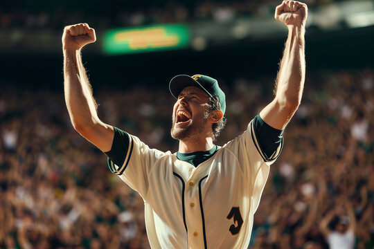 Champion's Elation: A Baseball Player's Exuberant Celebration of a Game-Winning Moment on the Diamond