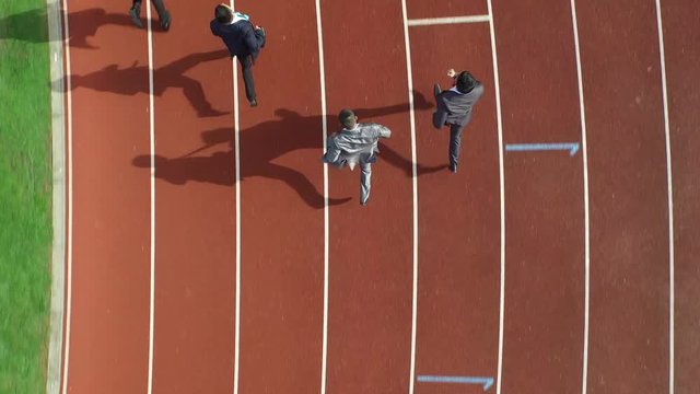 Athletics people running on the track field. Sunny day