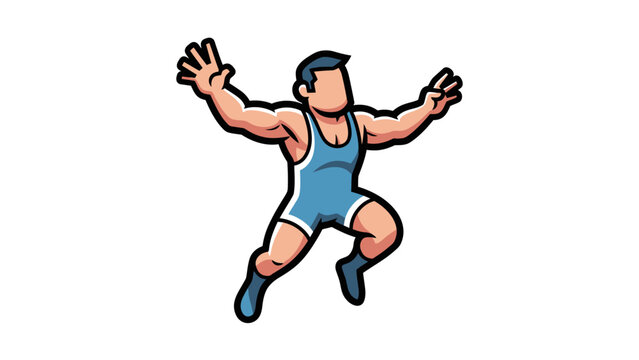 Victorious wrestler in blue and white uniform with raised arms. Ideal for sports events promotions, wrestlingthemed designs, or team mascots.