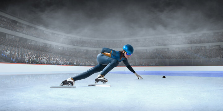 Short Track Speed ​​Skating on 3d ice stadium.