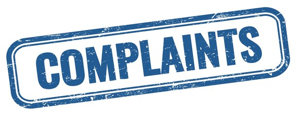 Complaints. Blue torn paper banner with text label. Word in gray hole.