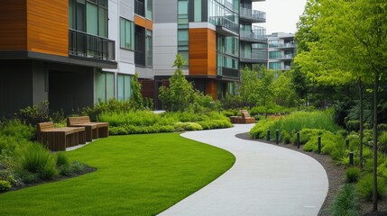 Amidst ample green spaces, a newly developed suburban apartment complex boasts spacious units, fostering outdoor activities and community engagement.