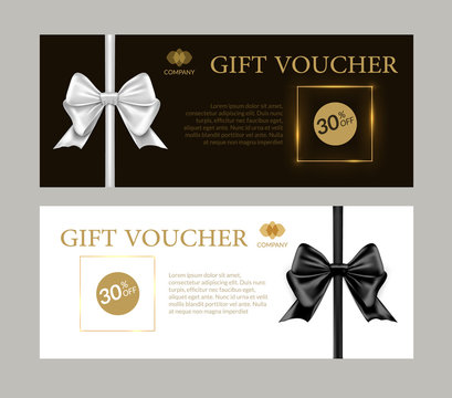Gift card or gift voucher template. Black and white bows and ribbons banner certificate design