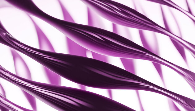 3D render of purple colored chrome liquid abstract flowing design against white background