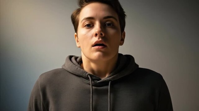 young adult sitting at table looking forward with focus and mental readiness