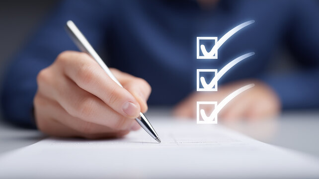 A comprehensive quality assurance checklist being marked with glowing ticks symbolizing reliable compliance completion.