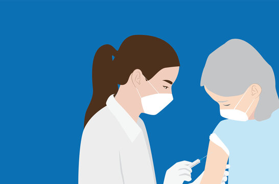 Woman refuses compulsory COVID vaccination doctor attempts to give shot. Concept COVID-19, Vaccination, Compulsory, Resistance, Medical Ethics