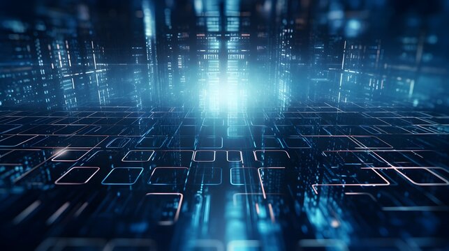 An abstract digital background with binary code and AI algorithms running in the background