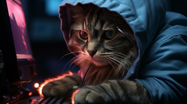 A hacker in a black hoodie with their face hidden is sitting at a sliver laptop and typing on the keyboard