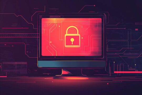 International Computer Security Day Background with Futuristic Technology concept. Modern Glowing Lock with connecting nodes