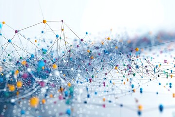 Abstract network computing circular dots connected with colorful lines background wallpaper design images