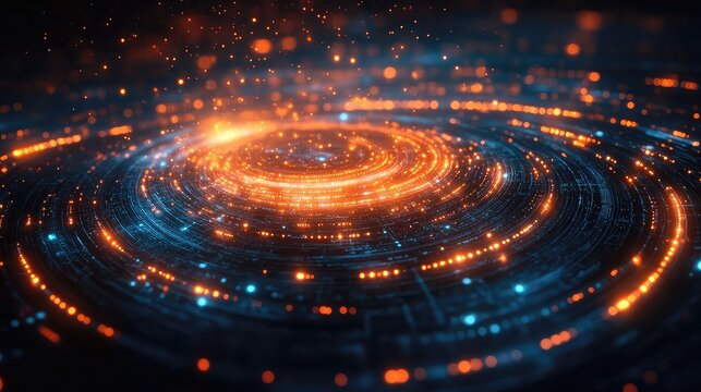 quantum computing entanglement concept. Abstract atom representation with glowing particles and motion.