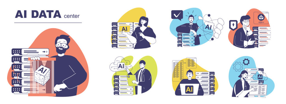 Artificial Intelligence web icons in line style. Innovation technology, machine, robot, bot, brain, collection. Vector illustration.