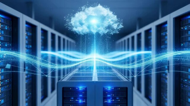 Cloud computing visualization a rainbow-colored cloud in a digital environment