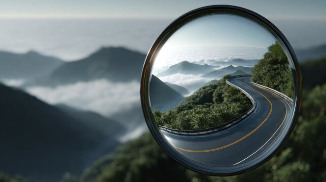 Mirror wall in the park. Architectural element to decorate the city. Reflective surface.