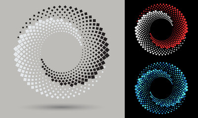 Circle halftone spiral backdrop set. Dotted abstract concentric circle. spiral, swirl, twirl element. Circular and radial dots helix. Design element for multipurpose use.