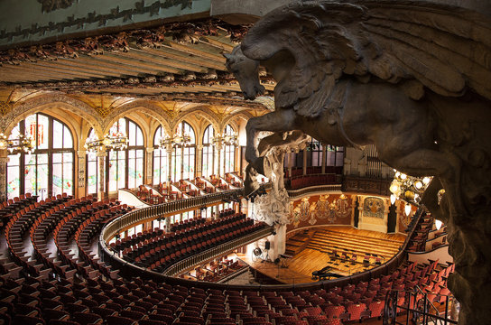 Empty concert hall awaiting the arrival of a symphony orchestra. Generative ai.