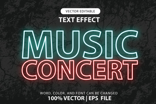 editable text live concert effect, effect font with glowing blue green neon glow style for headlines, logos or promotions at song events, parties and concerts vector template