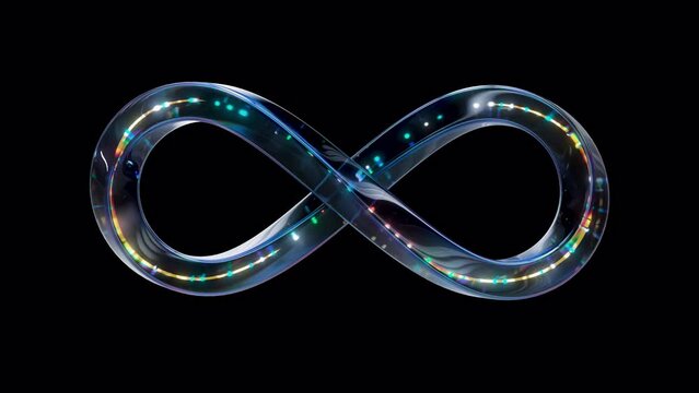 Glass Infinity symbol with neon in loop animation with alpha channel