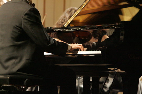 rule of thirds composition shot of Experiencing a piano concerto as an audience member, concert hall, emotional connection, copy space