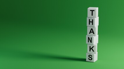 3D illustration of THANKS in English, using a classic font. It conveys deep gratitude and is ideal for elegant messaging.wooden elements.3D rendering