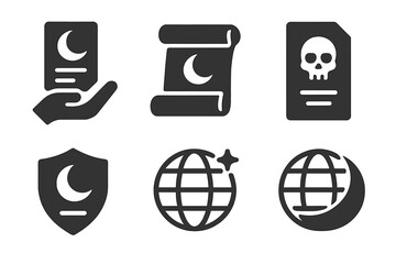 Ephemeral Icons. Solid style icons of ephemeral closure: a shadowy final offer from the floating world, a dark ultimatum in the