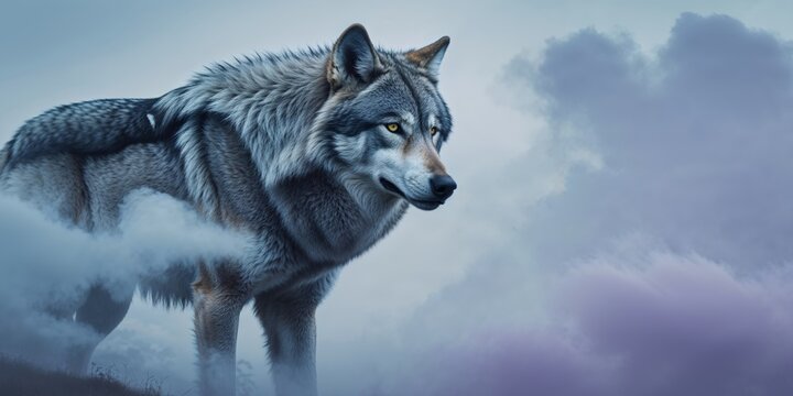 Mystical Wolf Colossus in a Dreamlike Landscape