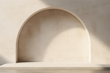 3D render empty white room with arch door wall design and concrete floor, corridor with stair, perspective of minimal design. Illustration