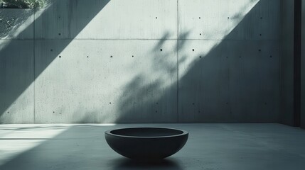 Minimalist concrete bowl with smooth curved shape and textured surface against white background, isolated product photography for modern home decor and design.